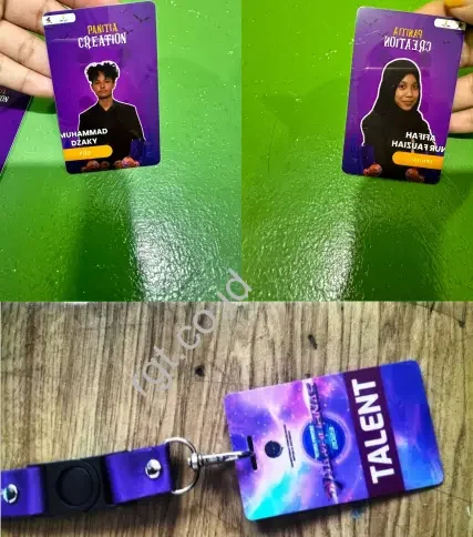 Cetak tali lanyard custom printing paket lengkap 2 sisi 2 cm include stoper dan pengait serta id card ukuran standar kartu ATM tanpa frame atau rumah kartu , finishing menggunakan paku mata ayam standar tali lanyard name tag 8 mm selanjutnya